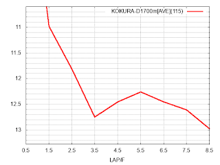 後半はガクっとラップタイムが落ちる形となる。◆相当な持久力が必要。 したがって他の競馬場以上に最後は粘り勝負となる傾向が高く、 相当な持久力が必要となる。 当然後ろから行く馬も道中で脚を使わされてしまうので、先行馬が有利となる。 |